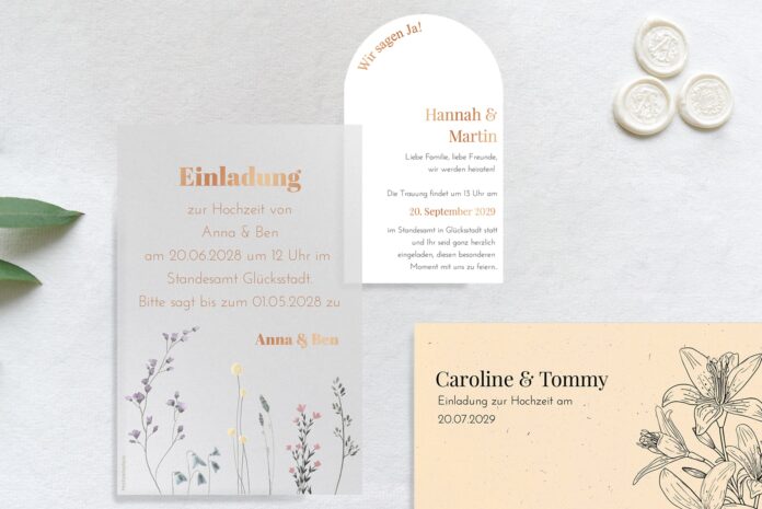 Tipp: In diesem Beitrag von uns gibt es Mustertexte für Hochzeitseinladungen.